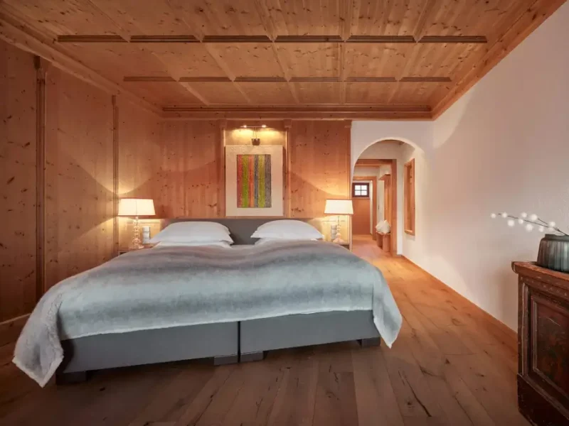 Hotellet er særligt populært blandt gæster, der ønsker ro, høj komfort og personlig service. Værelserne og suiterne er rummelige og elegant indrettet i klassisk alpin stil med moderne detaljer. Mange af dem har panoramaudsigt over de sneklædte bjergtoppe, hvilket giver en helt særlig stemning – især ved solopgang og solnedgang.
